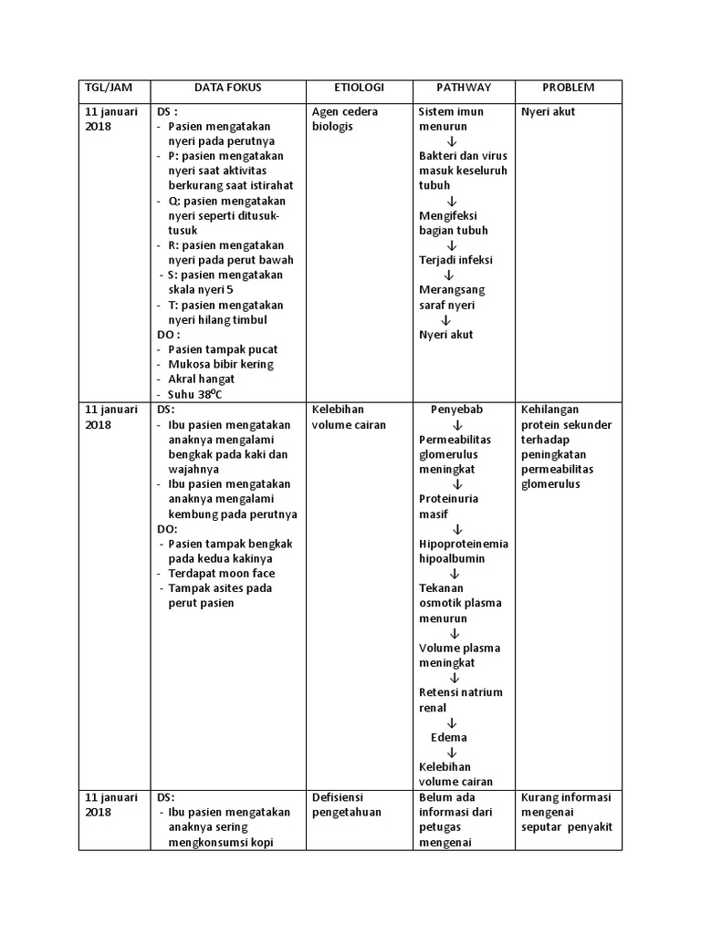 Analisa Data Sindrom Nefrotik from imgv2-2-f.scribdassets.com Nekrosis adalah proses kematian sel yang terjadi karena zat fisik, kimiawi, atau biologis yang menyebabkan kerusakan sel yang tidak dapat disembuhkan. Obstruksi kandung empedu, ketidakseimbangan nutrisi kurang dari kebutuhan tubuh berhubungan dengan ketidakmampuan pemasukan nutrisi, mual berhubungan dengan iritasi lambung, kekurangan volume Pathway faktor presipitasi (agen cedera, agen cedera biologis, agen cedera kimiawi, agen pencedera, dilatasi serviks, eksblusi fetal) reseptor nyeri persepsi nyeri nyeri menekan saraf mobilitas fisik terganggu nyeri di persepsikan gangguan mobilitas fisik berhubungan dengan faktor presipitasi nyeri akut ras teraktivasi rem menurun 8. Peradangan ini dapat mengakibatkan pembengkakan mukosa lambung sampai. Perspektif biologis adalah salah satu di antara berbagai perspektif dalam psikologi, membantu para psikolog memahami hubungan antara kekuatan fisiologis, otak, pemancar saraf dan perilaku. Evaluasi keperawatan hari terakhir masalah nyeri akut berhubungan dengan agen cedera biologis yaitu masalah teratasi dimana skala nyeri menurun dari skala 6 kategor sedang ke skala 2 kategori ringan. Suatu proses penghancuran mendegrasi styrofoam dilakukan menggunakan agen biologis berupa pseudomonad. Dengan demikian pada hasil penelitian sesuai dengan teori atau tidak ada kesenjangan antara hasil laporan kasus dengan teori.