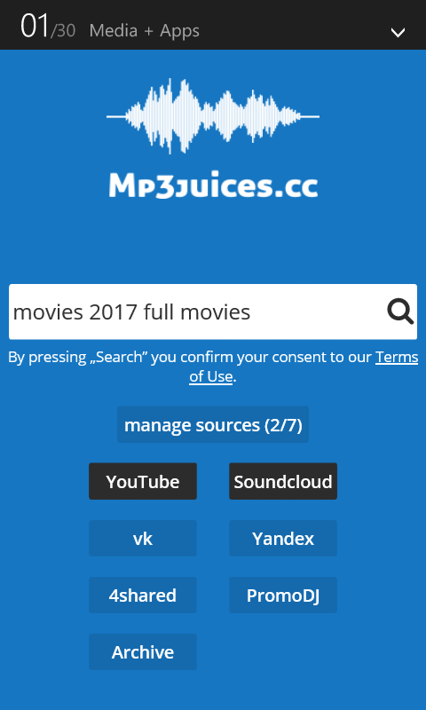 Mp3juices free mp3 download is an online tool for music download from youtube, soundcloud, yandex, promojd, 4shared, archive and vk sources. This website offer latest mp3 music to download for free. Just type in your search query, choose the sources you would like to search on and click the search button. By using our „search you accepting our terms of use. Get your #mp3juice with easy steps.